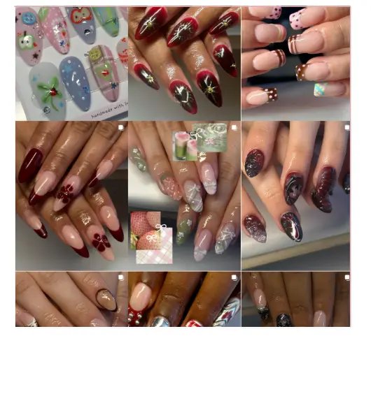 i love all styles of nail art! simple, detailed, goth, soft, junk nails, i genuinely love doing them all :)